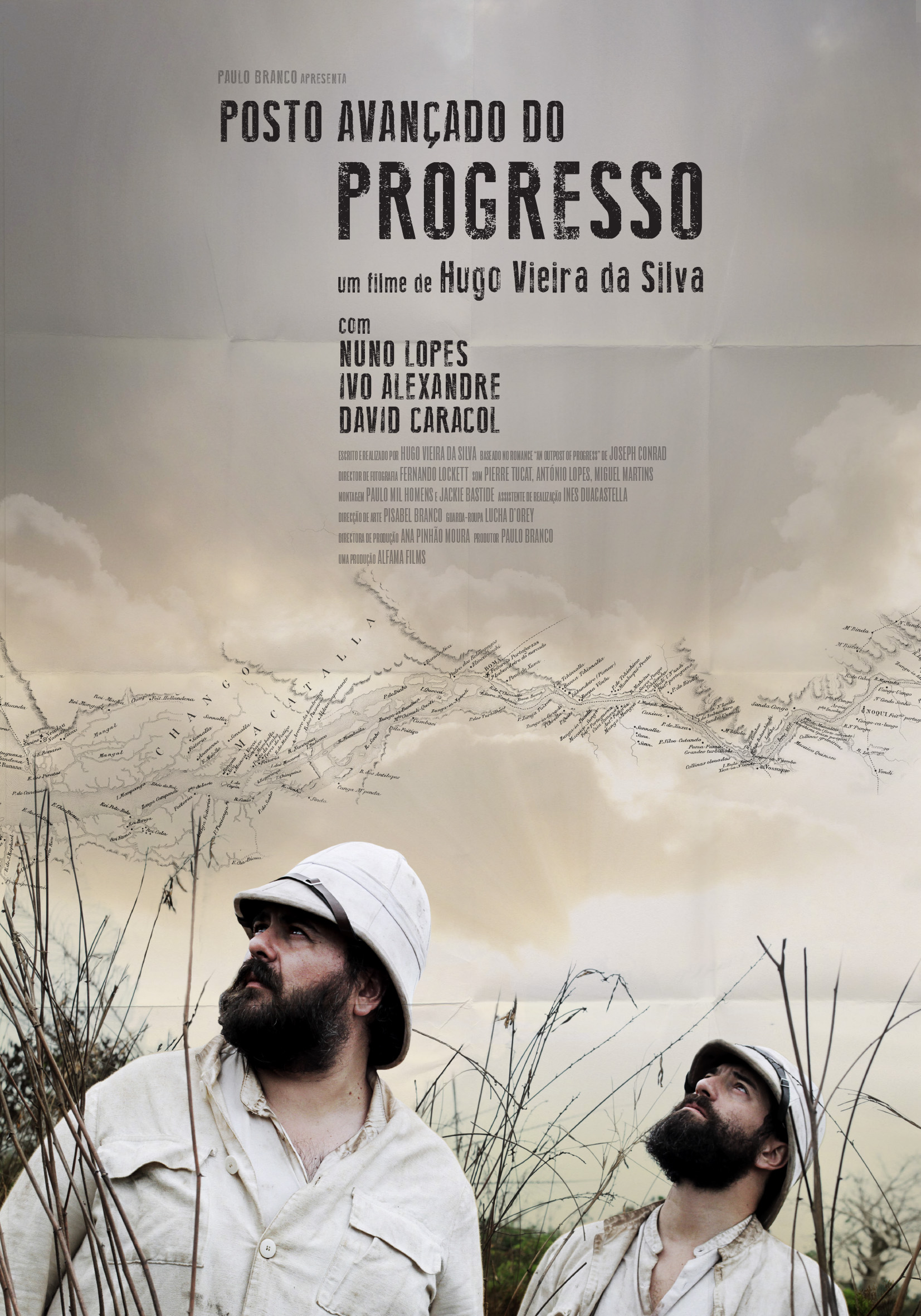 Key art for the TV mini-series 'An Outpost of Progress' by Hugo Vieira da Silva. The series tells the story of two inexperienced Portuguese colonizers, who at the end of the 19th century, disembark in a remote part of the Congo River in order to coordinate a trading post.
