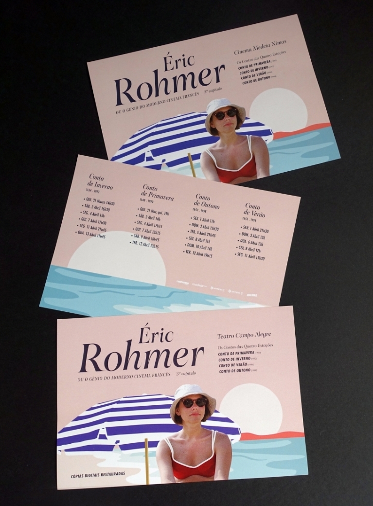 Key arts and promotional materials for the film program 'Éric Rohmer or the Genius of Modern French Cinema'. 20 restored prints make up the entire program, which is divided into 4 chapters. I designed a poster for each of the chapters.