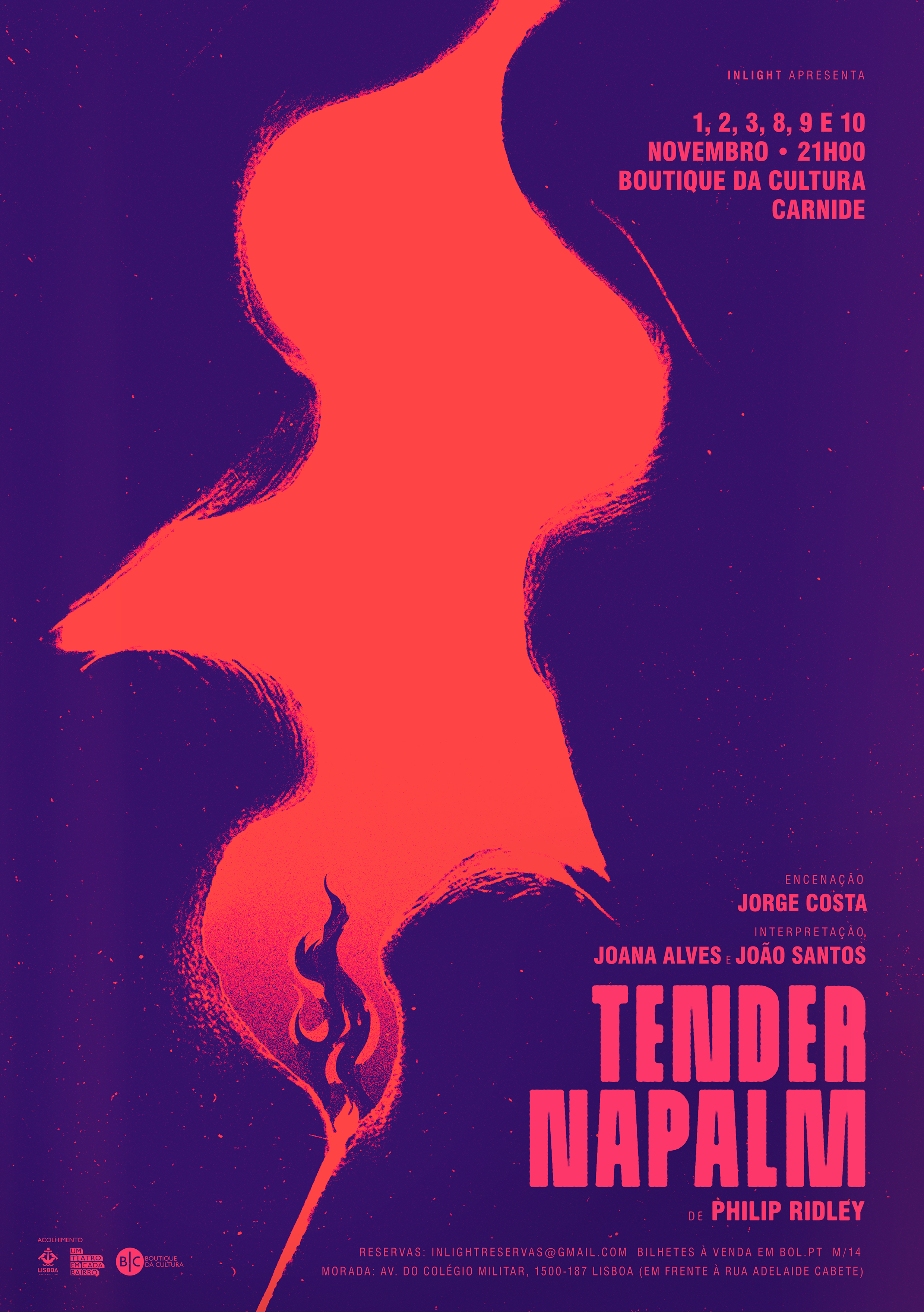 Poster for the Portuguese premiere of the play Tender Napalm, by Philip Ridley.