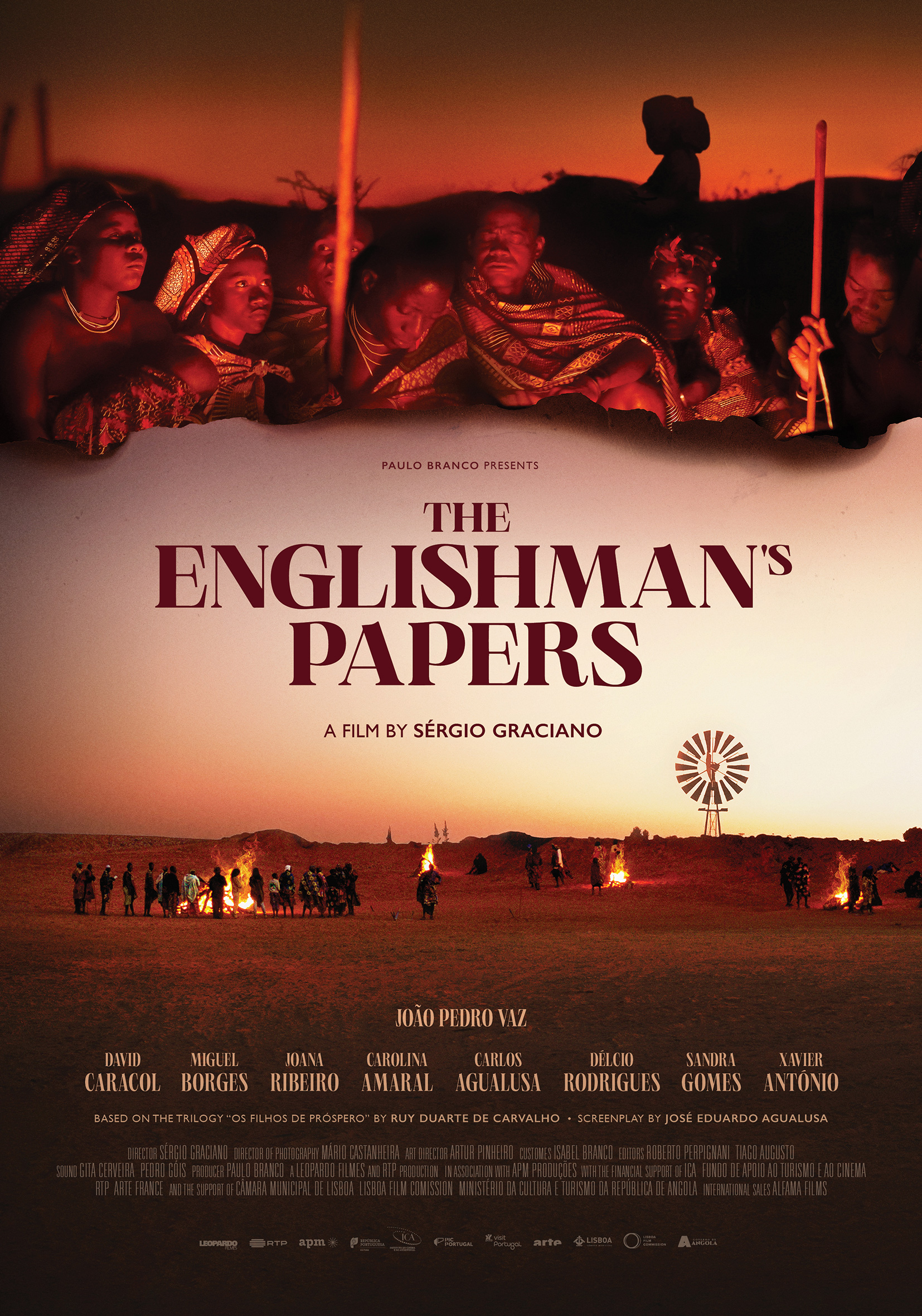 Poster for "The Englishman’s Papers" the new upcoming film by Sérgio Graciano. The film is based on the trilogy "Os Filhos de Próspero" by Ruy Duarte de Carvalho, poet, novelist and filmmaker. It tells the story of how he finds out that his father left papers in the Namib desert that would help him shed light on a mystery that occurred in 1923. Through his search for the “Englishman’s Papers”, we embark on an epic tale that goes from the turn of the 19th century to the beginning of the 21st, in the magnificent locations of the Angolan south.