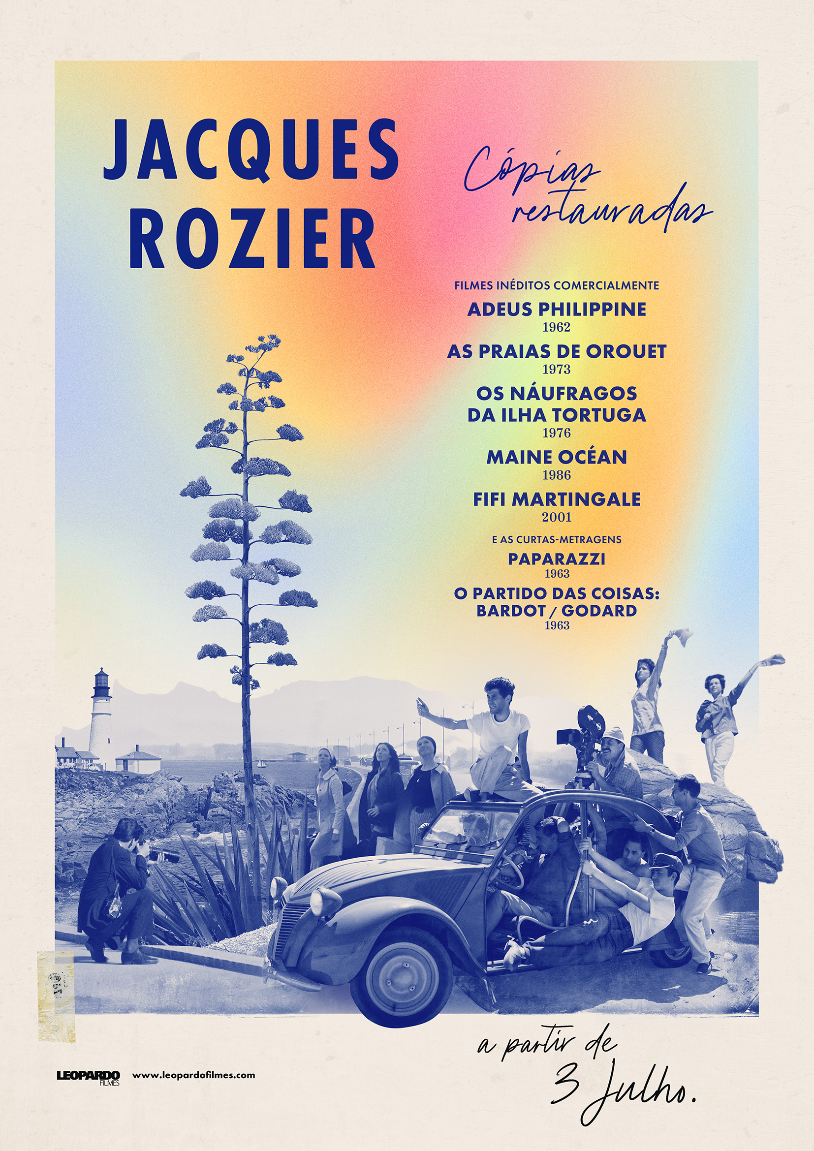 Identidade gráfica e cartazes para o ciclo de cópias restauradas digitais dedicadas ao cineasta francês Jacques Rozier. O trabalho procurou traduzir visualmente o tom leve, espontâneo e experimental do seu cinema, com referências subtis à estética da Nouvelle Vague.